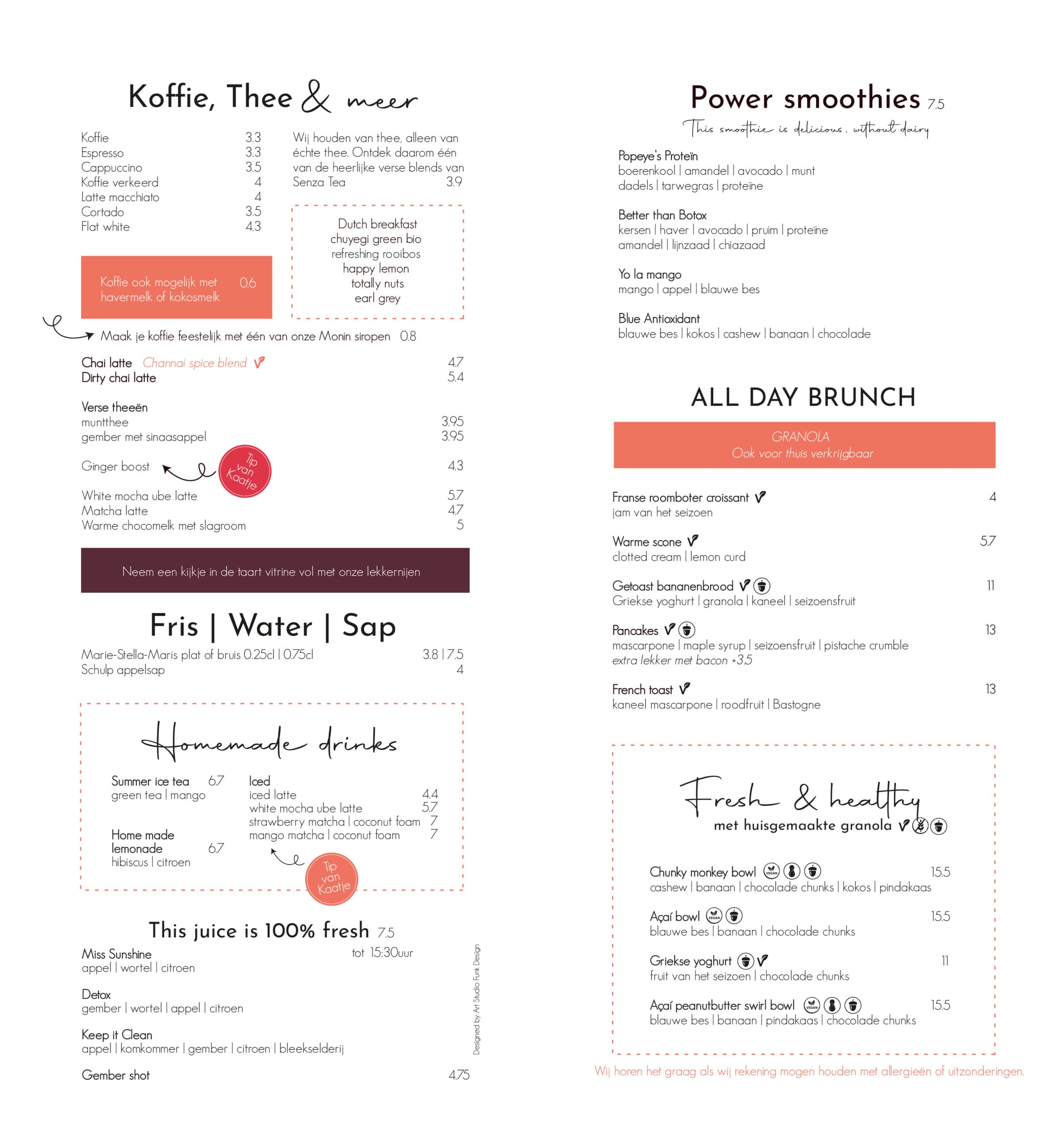 Kaatje is een gezellige plek die je de drukte van de dag doet vergeten. Een plek waar je welkom bent voor lekker ontbijt, stevige brunch, lunch, barista koffie en een groot assortiment aan taart en sweets. Juice lover? Onze juicebar is een vaste hotspot voor vele juice-fans!