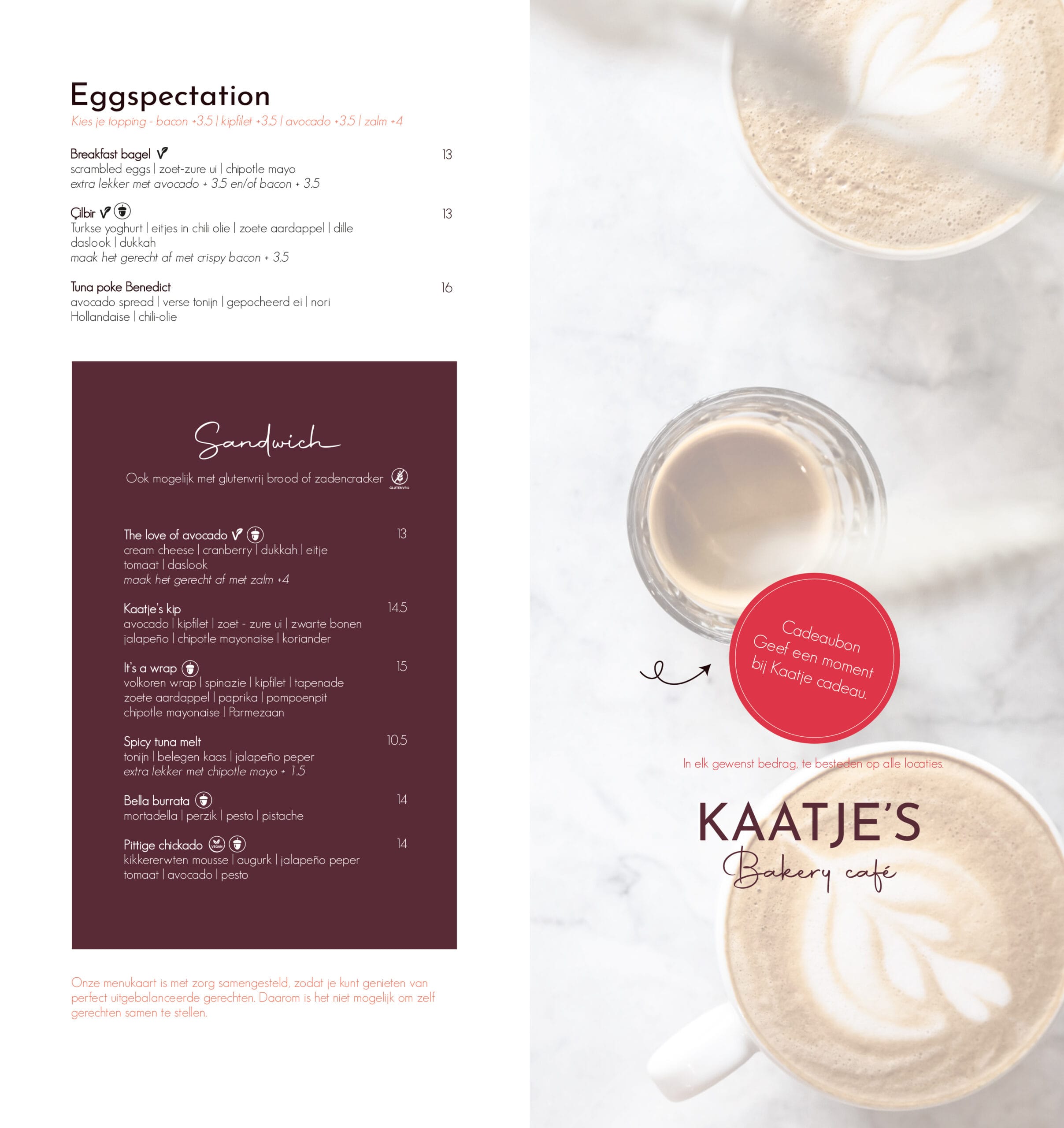 Een Kaatje’s Bakery café ontbijt of lunch cadeau doen? Bij Kaatje verkopen wij cadeau bonnen voor elk gewenst bedrag. Stuur een e-mail of kom langs om er een af te halen.