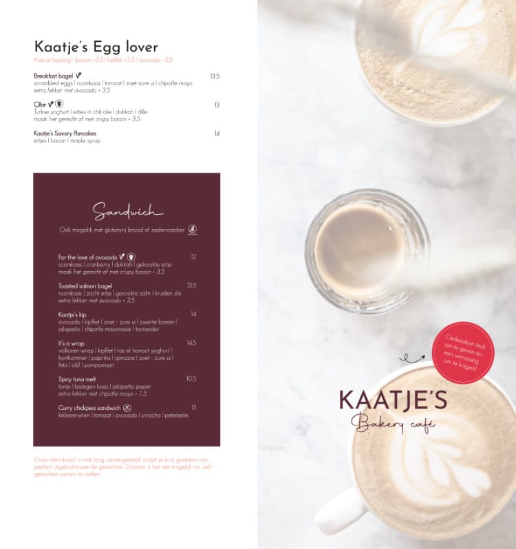 Menu Kaatje’s Bakery café Heiloo
